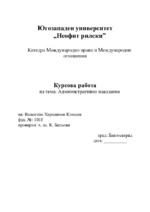 Курсова работа по администратовно право на тема : Административно наказание. Може да се използва от студенти от 2 или друг курс изучаващи дисциплината в ЮЗУ....