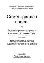 Семестриален проект по Административно право и Административен процес на тема: Недействителност на административните актове...