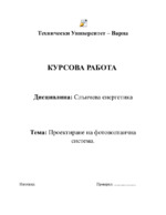 Курсова работа за студент ОКС - магистър в специалност електротехника модул ВЕИ. Съдържа проект на фотоволтаичен парк проектиран на програмата PV syst....