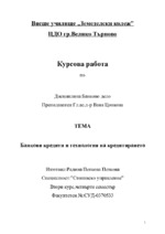 1.Въведение Банковите кредити зависят както от външните условия, определени от Централната банкова институция, така и от кредитната политика на самата банка. Кредитната политика дефинира целите, задачите и приоритетите на кредитна...