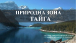 Описва характеристиките, на природна зона Тайга, биоразнообразие и географско разположение на зоната...