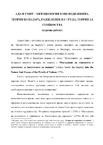 Адам Смит – методология в изследванията, теория на пазара, разделение на труда, теория за стойността