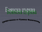 Материалът е предназначен за история на изкуството в 5 клас. Боянската църква "Св. Св. Никола и Пантелеймон" е Средновековна българска църква (придворен параклис) в софийския квартал Бояна, намиращ се в подножието на Витоша...