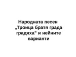 Народната песен „Троица братя града градяха” и нейните варианти...