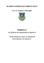 Избор на модел за оценка на изпълнението на проекта