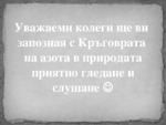 Азотът е открит през 1772 година от шотландския лекар Даниъл Ръдърфорд. Той е химичен елемент с атомен номер 7 и означение N. Азотът е най-лекия елемент в азотната група и при стайна температура е прозрачен газ без миризма...