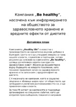 Разработване на кампания, насочена към информирането на обществото за здравословното хранене и вредните ефекти от диетите...