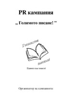 Примерен план за протичането на една PR-кампания (цели, публики, сценарий, организатори, партньори, спонсори, реклама, бюджет)...