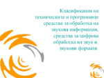 Класификация на техническите и програмните средства за обработка на звукова информация, средства за цифрова обработка на звук и звукови формати