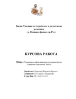В настоящата курсова работа е разгледана и задълбочено анализирана Управленската информационна система (УИС) на фирма. Описано е текущото информационно управление на фирмата, като е поставен акцент върху звеното "Търговски отдел"...