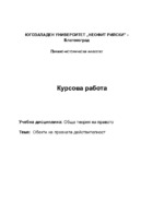 Курсовата работа включва: същност на обектите на правото. Понятие за обекти на правната действителност. Обектите на правната действителност и правото като нормативна система. Видове обекти на правната действителност...