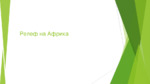 Африка е континент с много разнообразен релеф. Там има обширни равнини и дълги планински вериги. Средната надморска височина е 750 метра. Африка се поделя на две части: ниска и висока...
