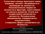 Потребности и мотивация на личността. Психологически теории за личността и фактори, които влияят на нейното развитие. Етапи във възрастовото развитие на личността. Познавателна, емоционална, поведенческа, комуникативна и морална сфера в развитието...