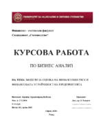 Основната цел на тази курсова работа е да представи няколко метода, а именно Z-score моделът за оценка на финансовият риск, общата оценка на финансовото състояние на бизнеса, както и оценка на неговата финансова устойчивост...