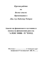 Анализ на финансовото състояние и оценка на финансовия риск на “АЛЕКС ФИШ - 92" ЕООД...