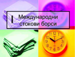 Международните стокови борси са : постоянно действащи пазари за търговия на еднородни партидно - заменяеми продукти. Иформационен център за всичко отнасящо се до всеки борсов продукт...