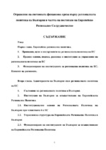 Отражение на световната финансова криза върху регионалната политика на България в частта на постигане на Европейско Регионално Сътрудничество