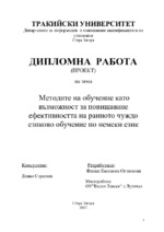 Целта на настоящият дипломен проект е систематизирането на теоретичните постановки от областта на педагогика, лингвистика и психология, както и методически...