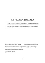 Предлагам дипломната ми работа по дисциплината Управление на качеството при проф.д-р Кузманов, съобразно неговите изисквания. Тема: Анализ на работата по качеството на винарска изба "Румелия" - пълна разработка от 20 страници...