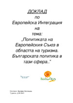 Политиката на европейския съюз в областта на туризма. Българската политика в тази сфера.