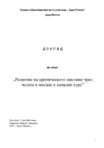 Развитие на критическото мислене чрез четене и писане в начален курс