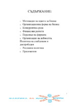Описание на фирмата, принципи на фирмата (мисия и цели), краткосрочни и дългосрочно цели, swot анализ, анализ на конкуренцията, сегментиране на пазара, текущо състояние на фирмата, организационна структура, приходи, разходи и печалби...