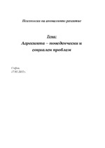 Агресията често е обща характеристика на децата с поведенчески разстройства. Берковиц разграничава агресивния акт, като конкретно действие от агресивността като качество на личността. Според и. с. кон появата на агресивност е свързана с неблагополучия...