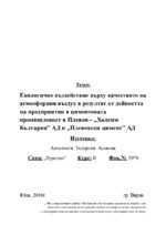 Екологично въздействие върху качеството на атмосферния въздух в резултат от дейността на предприятия в циментовата промишленост в Плевен – „Холсим България” АД и „Плевенски цимент” АД