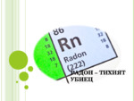 Радонът (Радон-222) е благороден, радиоактивен газ без вкус, мирис с период на полуразпад 3,82 дни. Той е от семейството на Урана (U 238), като се получава от радиоактивното разпадане на Радия (Ra 226 с период на полуразпад 1600 години)...