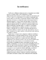 Свободата е обширно понятие, което се изразява в различни аспекти за всеки един от нас. Единственото общо определение, което можем да дадем за свободата на всеки един от нас е това, че тя е способността на човека да направи своя...