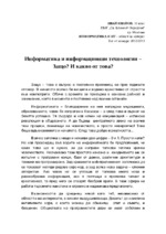 Информатиката е науката на новото време. Тя е най-бързо развиващата се и същевременно най-необходимата в ежедневието на модерното общество. Терминът "информатика" произлиза от френската дума information...