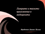 Презентация по физика за 11 клас, включва: устройство на лазерите; видове лазери; приложение в медицината...