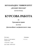 В увода се започва с разяснения относно „физическите лица“, „правосубектността“ и „правоспособността“. След това се пристъпва към основната тема на курсовата работа – дееспособността и първоначално към нейното определение...