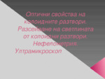 Оптични свойства на колоидните разтвори. Разсейване на светлината от колоидни разтвори. Нефелометрия. Ултрамикроскоп