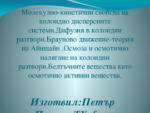 Молекулно-кинетични свойства на колоидно-дисперсните системи. Дифузия в колоидни разтвори. Брауново движение - теория на Айнщайн. Осмоза и осмотично налягане на колоидни разтвори. Белтъчните вещества като осмотично активни вещества...