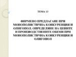 Фирмено предлагане при монополистична конкуренция и олигопол. Определяне на цените и производствените обеми при монополистична конкуренция и олигопол.