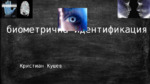 Същност на биометрична идентификация; отпечатък от пръст; ирис на окото; ретина на окото; гласова идентификация; геометрични особености на лицето; геометрични особености на китката на ръката...