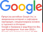 Гугъл е американска интернет и софтуерна корпорация, специализирана основно в търсенето в интернет. Гугъл е базирана в град Маунтин Вю, щат Калифорния. Към юни 2013 г. има постоянно заети 44 777 служители...
