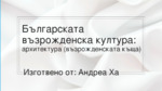 Българската възрожденска култура: архитектура (възрожденската къща)...