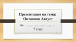 Октавиан Август, роден като Гай Октавий Турин и осиновен от своя пра-вуйчо Юлий Цезар, поради това по-късно наречен Гай Юлий Цезар Октавиан е първият римски император. Управлява Римската империя 41 години – от 27 пр.н.е. до своята смърт през 14 г....