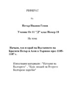 Начало, ход и край на Въстанието на Братятя Петър и Асен в Търново през 1185- 1187 г.