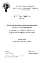 Курсовата работа разглежда проблема за фалшивите новини и масовата дезинформация, както и информационните новини като прави пряка връзка с мисълта на философа и мислител Фридрих Ницше затова, че "факти не съществуват, има само интерпретации"...