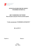 Казус по Основи на правото, Бизнесикономика, Международно висше бизнес училище...