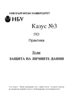 Казуса е на тема "Защита на личните данни". Посочени са зададените въпроси, отделени са отговорите на всеки въпрос, посочена е използваната литература за решението на казуса. Посочените текстове от закони са актуални към ноември 2014год...