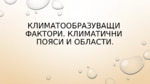 Фактори за формиране на климата. Климатични пояси и области. Климатограми...