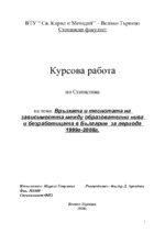 Връзката и зависимост между образователни нива и безработицата в България за периода 1999 г. - 2008 г.