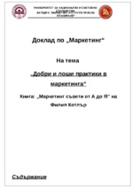 Курсова-семестриална задача по маркетинг по книгата на Филип Котлър "От А до Я"- Маркетингът днешно време, терминологии и анализ...