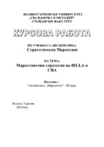 Курсовата работа съдържа сравнение на марктинговите дейности и стратегии на CBA и BILLA...