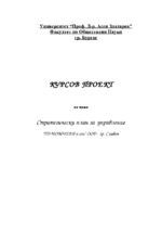 Курсовата работа съдържа основните характеристики, оценка на избраната стратегия, стратегически анализ на плана, изводи и препоръки...