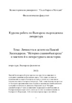 Личността и делото на Паисий Хилендарски. "История славянобългарска" и мястото й в литературната ни история...